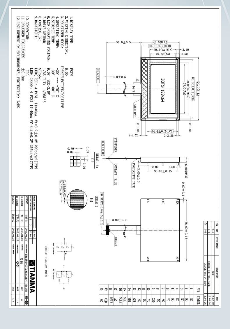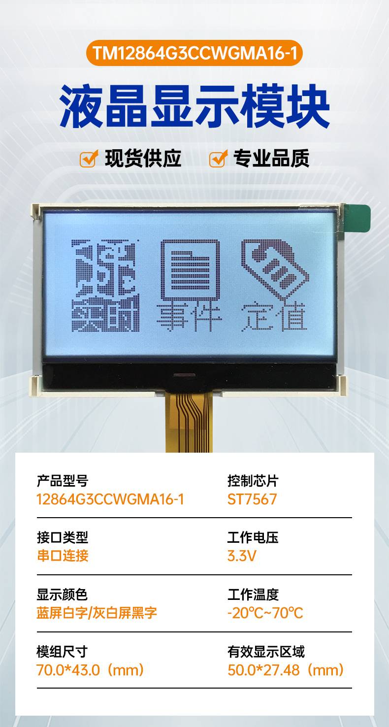TM12864G3CCWGMA16-1兼容替代液晶屏12864串口COG点阵LM6030ACW