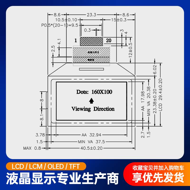 LCM160128A液晶显示屏160*128点阵汉字图形显示屏工厂直供