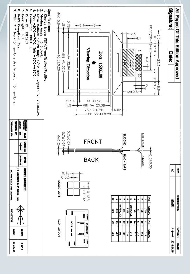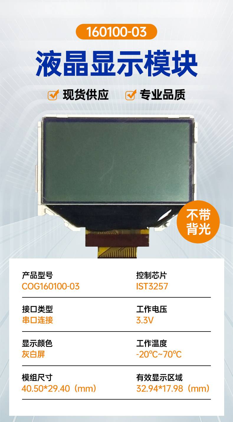 COG160100-03液晶显示屏模块无背光160100点阵屏IST3257原厂直供