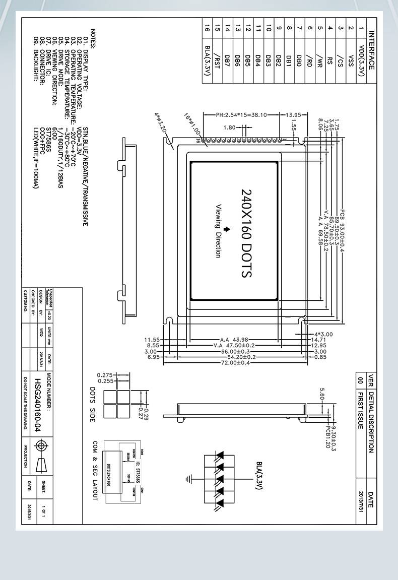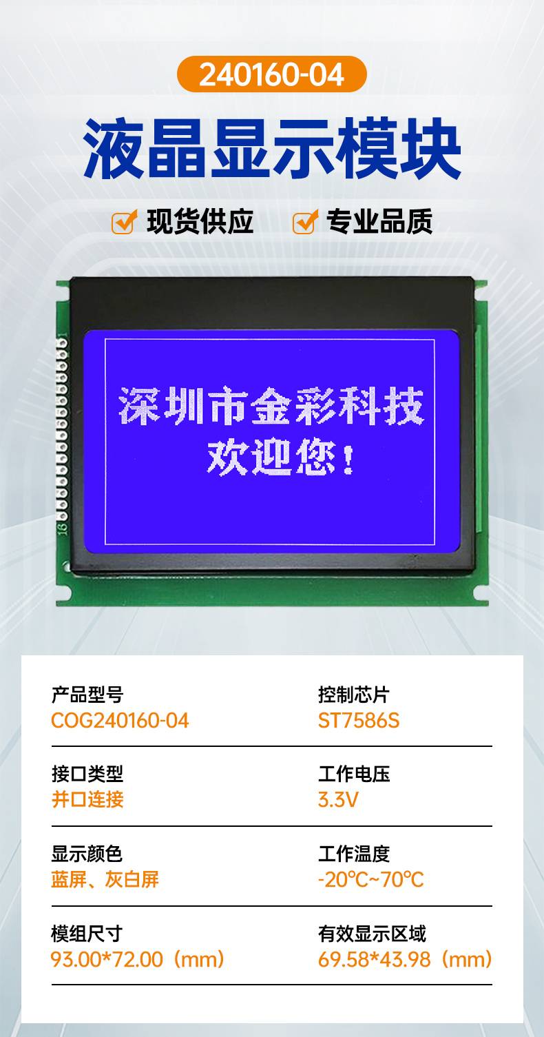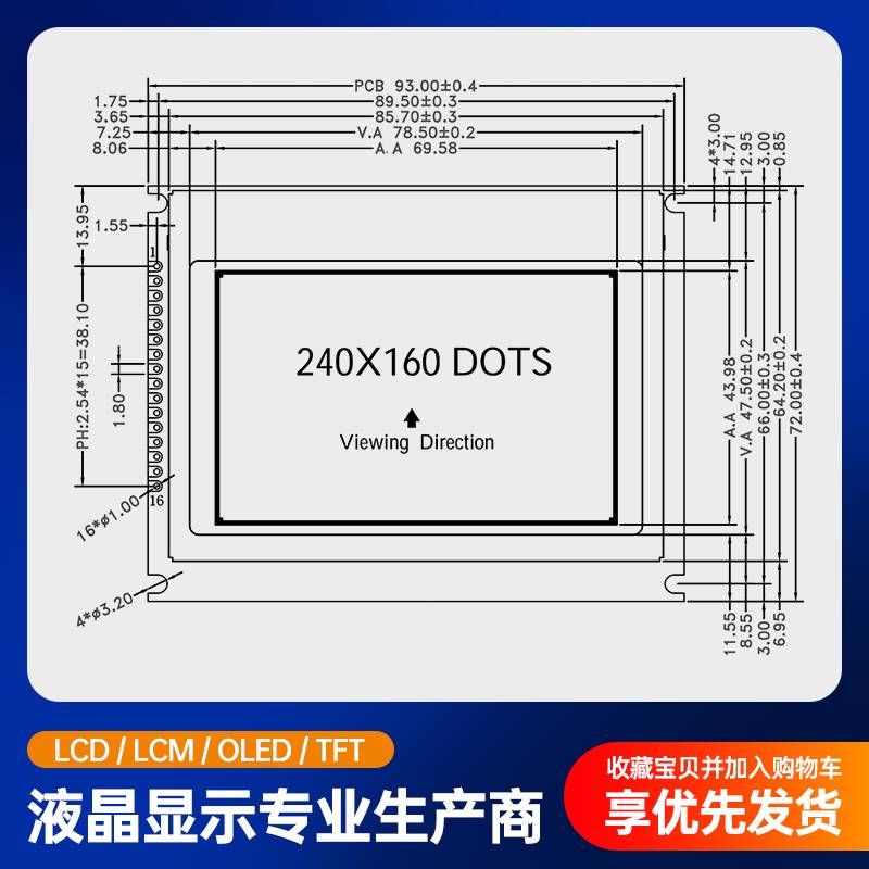 COG240160-04液晶显示屏模块240x160COG点阵屏ST7586S并口高清LCD