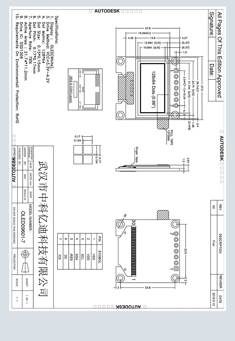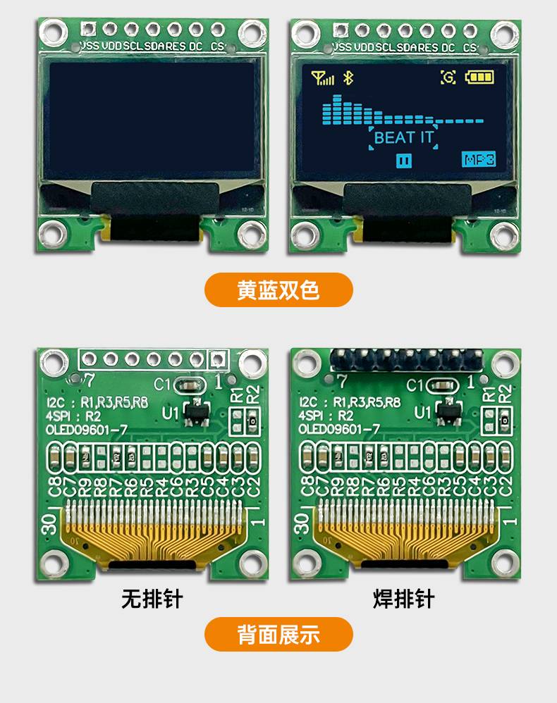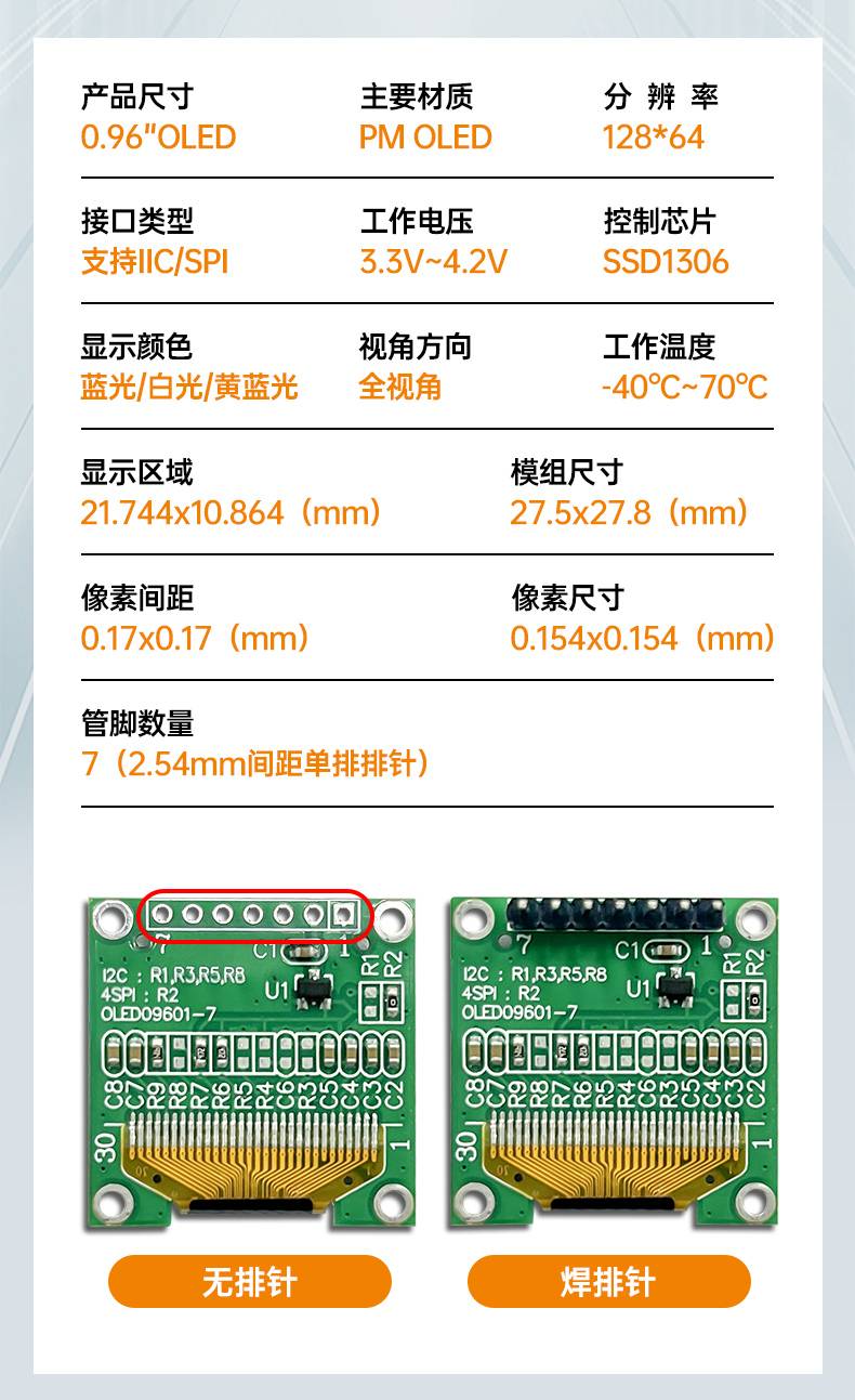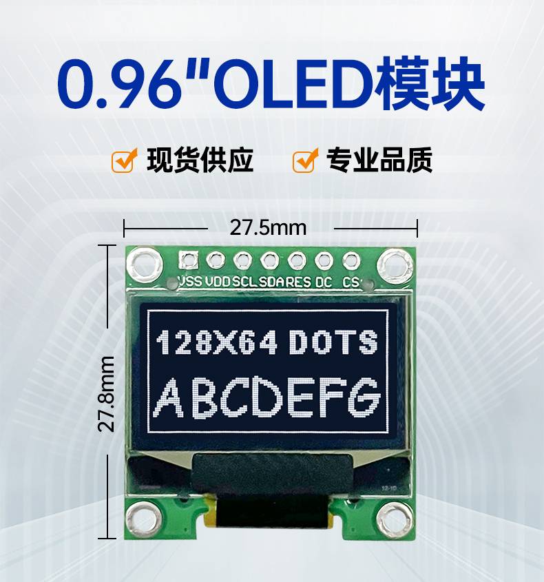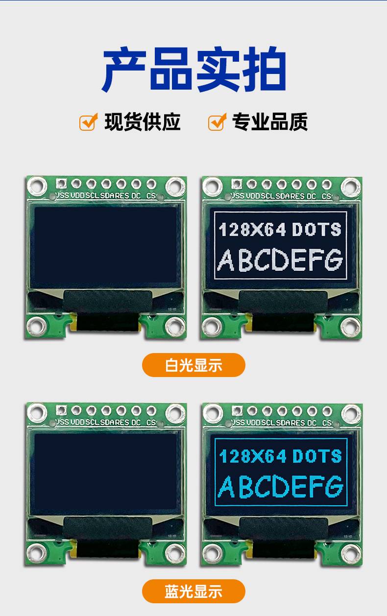 0.96寸OLED显示屏7针0.96"液晶屏模块白光12864显示屏IIC/SPI接口