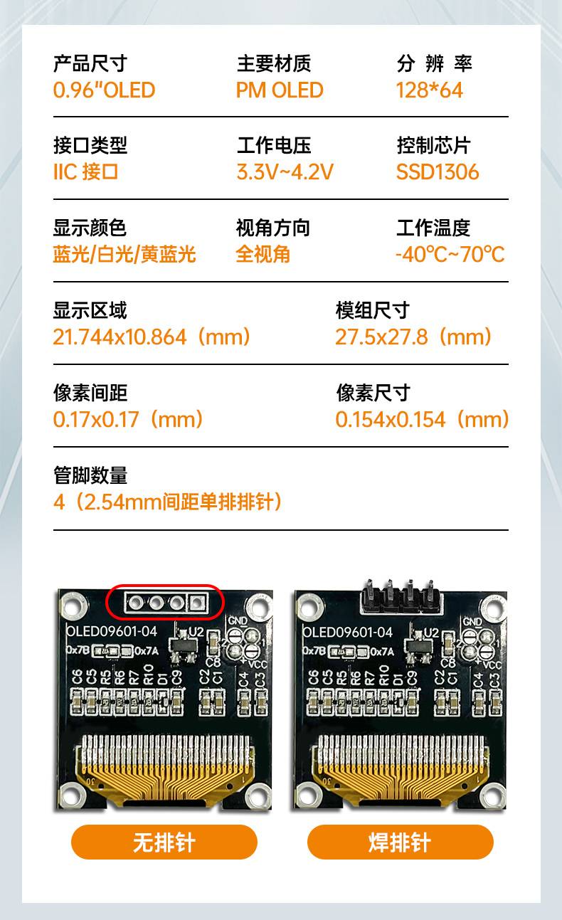 0.96寸OLED液晶屏4针模块12864显示屏模组IIC接口小OLED显示屏