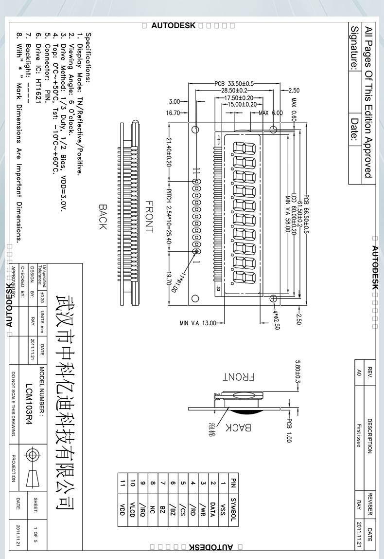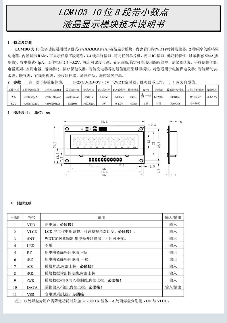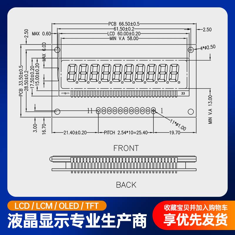103R4段码液晶屏10段8位带小数点多功能通用型无背光HT1621驱动