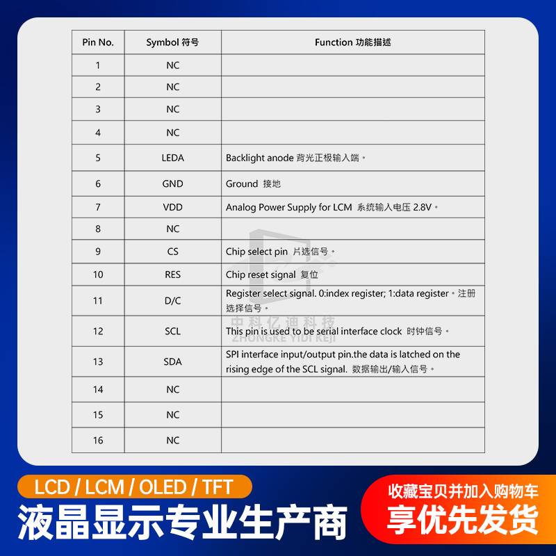 0.85寸TFT液晶屏128*128分辨率SPI高清彩色显示屏GC9107驱动现货