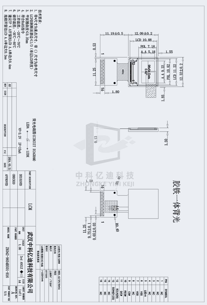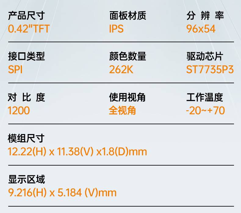 0.42寸TFT液晶屏96*54分辨率SPI高清彩色显示屏ST7735P3驱动现货
