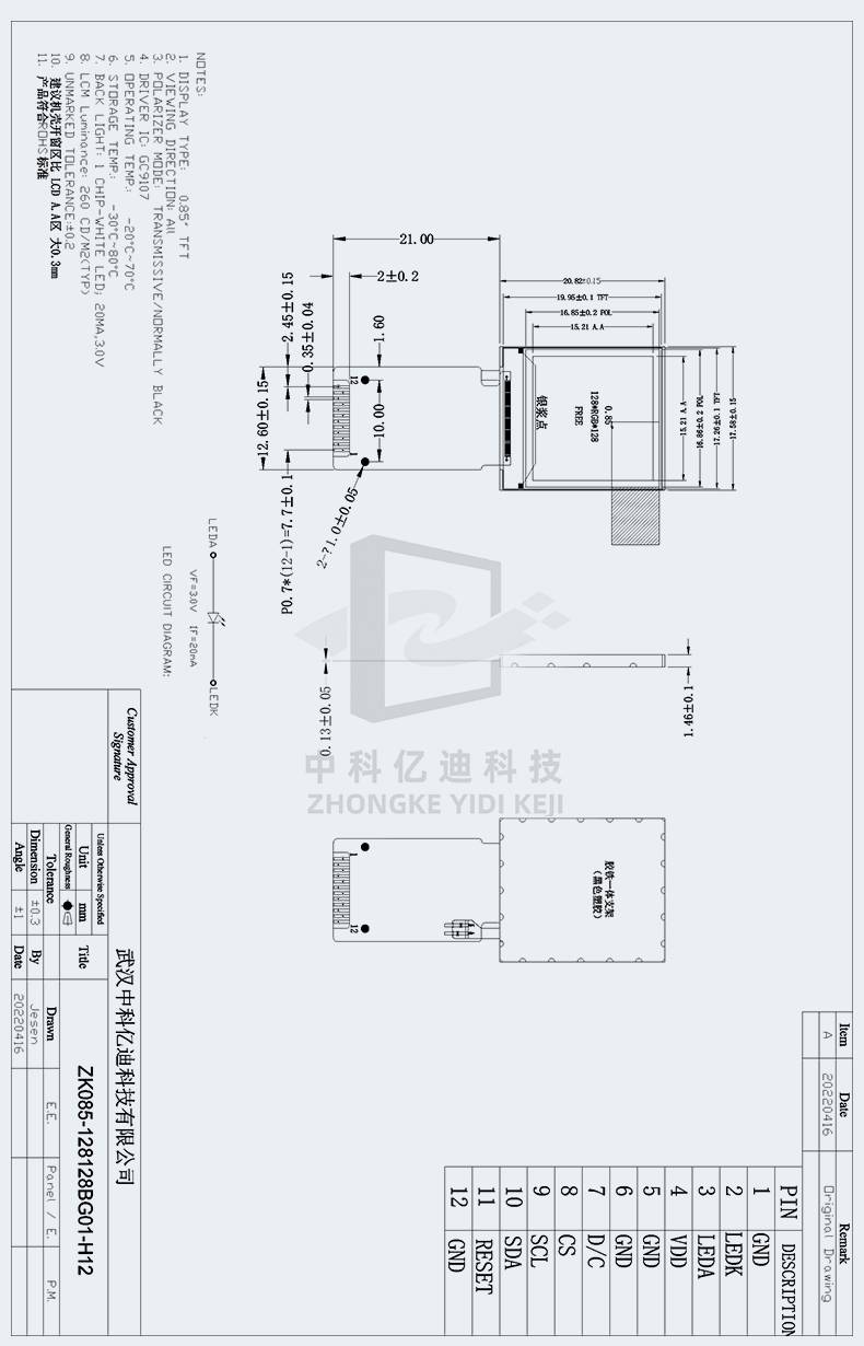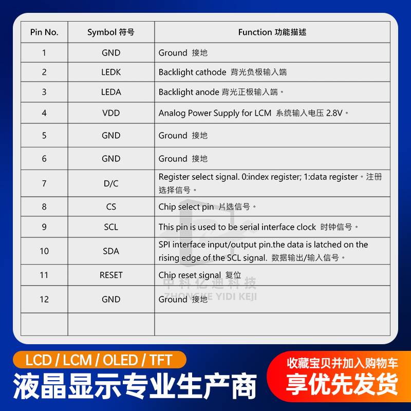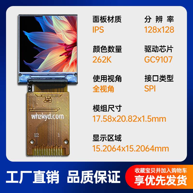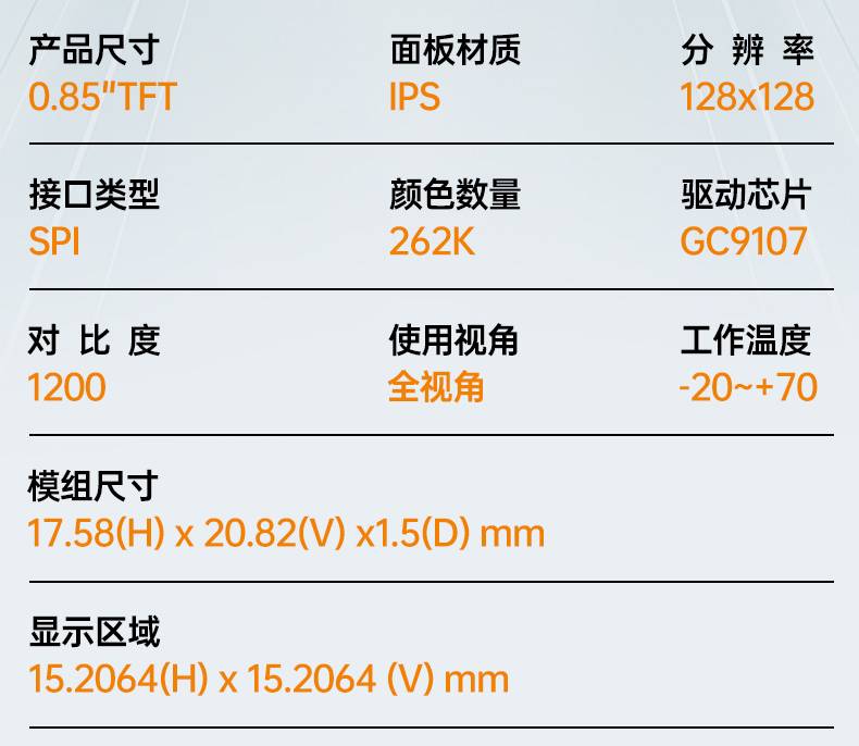 0.85寸TFT液晶屏128*128分辨率SPI高清彩色显示屏GC9107驱动现货