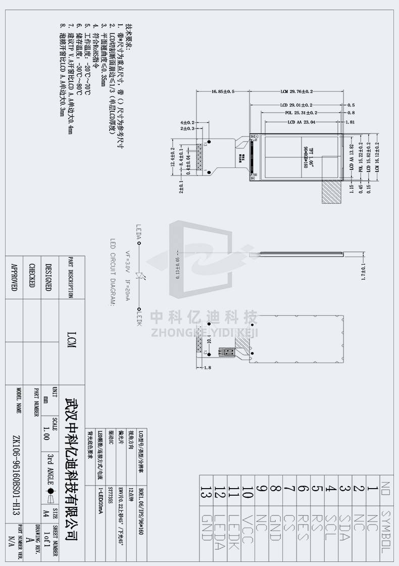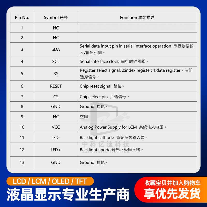 0.96寸TFT液晶屏80*160分辨率SPI高清彩色H13显示屏GC9107驱动
