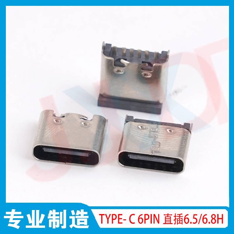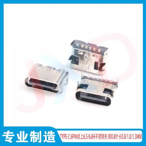 TYPE-C 6PIN板上6.5/6.8H不锈钢壳 脚0.8针长0.8/1.0/1.3MM