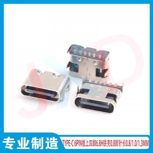 TYPE-C 6PIN板上四脚6.8H铁壳0.8脚针长0.8/1.0/1.3MM