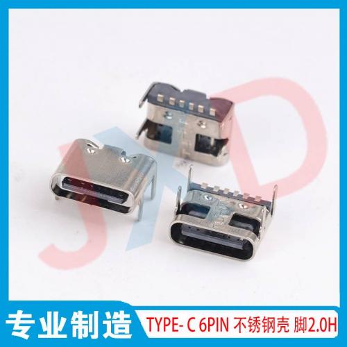 TYPE- C 6PIN 不锈钢壳 脚2.0H