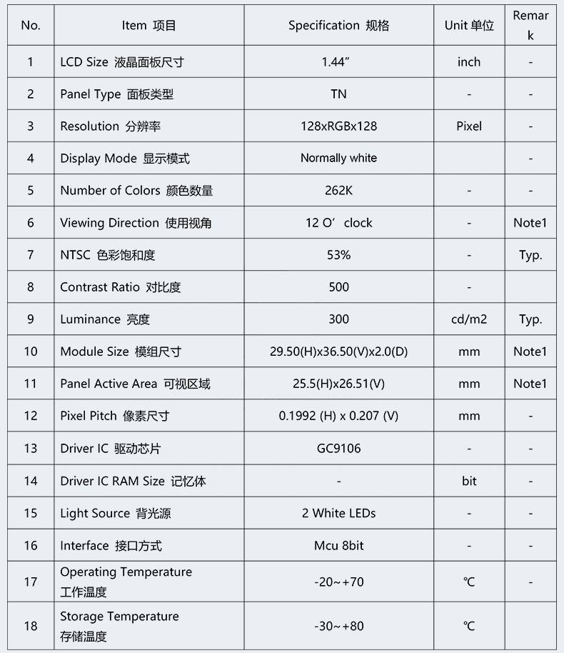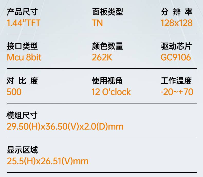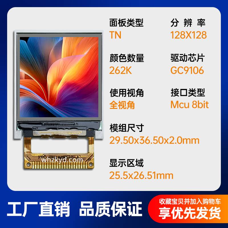 1.44寸TFT液晶屏128*128分辨率H23高清彩色显示屏GC9106驱动现货