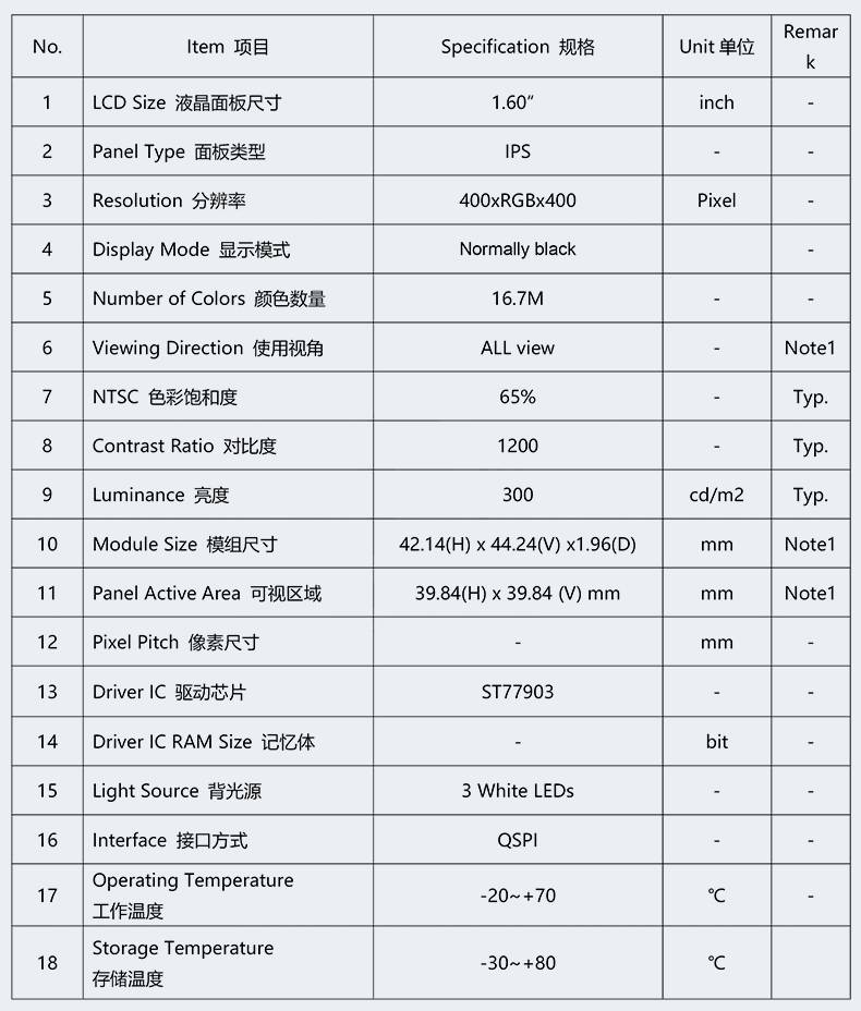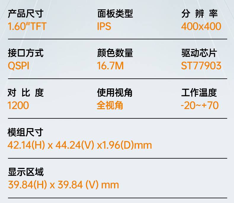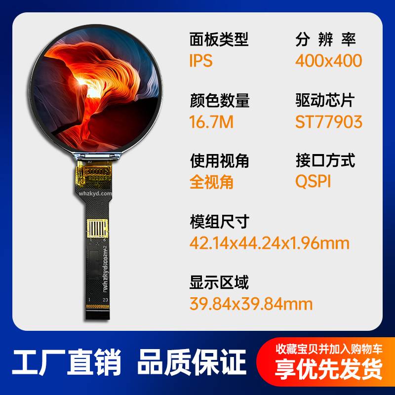 1.6寸TFT液晶屏圆屏400*400分辨率QSPI高清彩色显示屏ST77903驱动