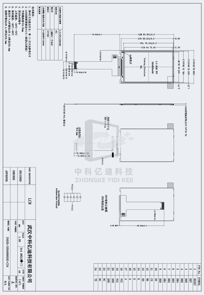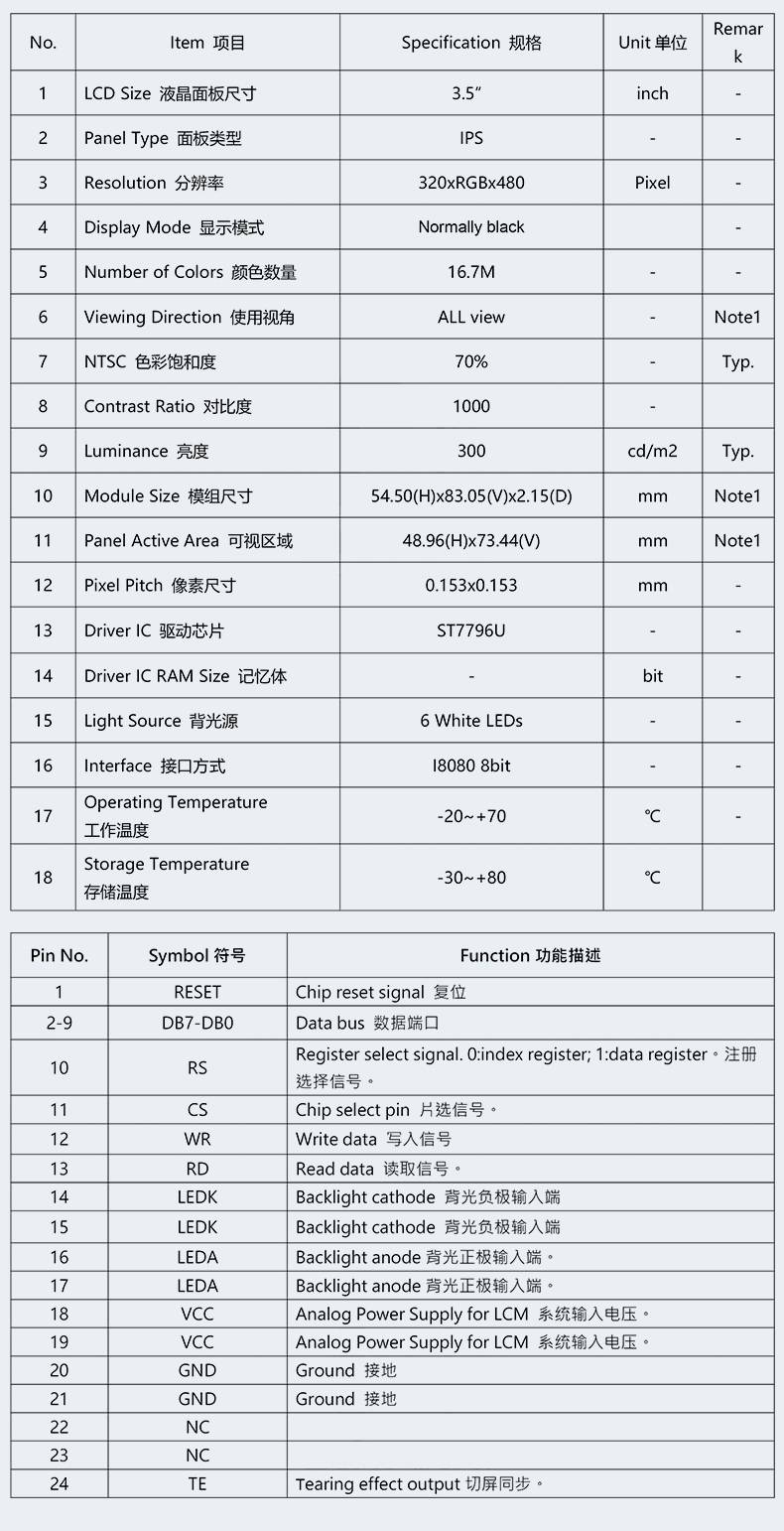 3.5寸TFT液晶屏320*480分辨率C24IPS高清彩色显示屏ST7796U驱动