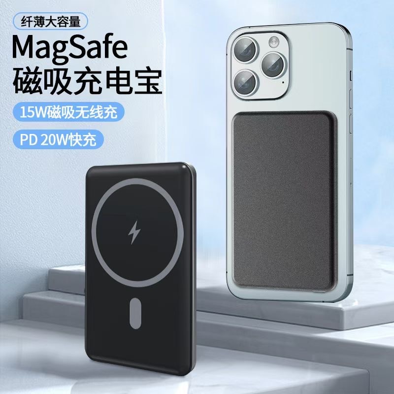 苹果外挂电池-无线充,铝合金材质,足5000mah,无线充电5/7.5/15 W,type-c可双向快充9V2A。