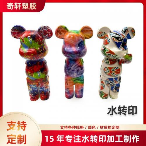 厂家塑料玩具水转印加工 塑胶玩偶水披覆加工 暴力熊彩色水转印
