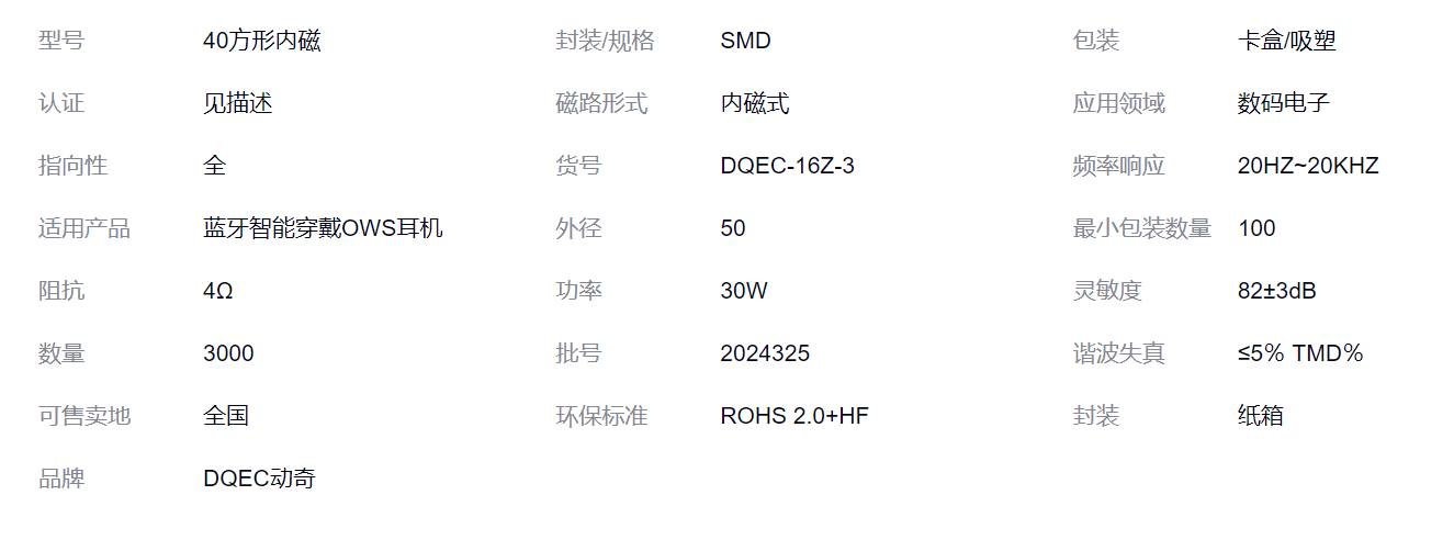 动奇扬声器52*52*33H mm智能蓝牙音响家具音箱4Ω3W折耳喇叭