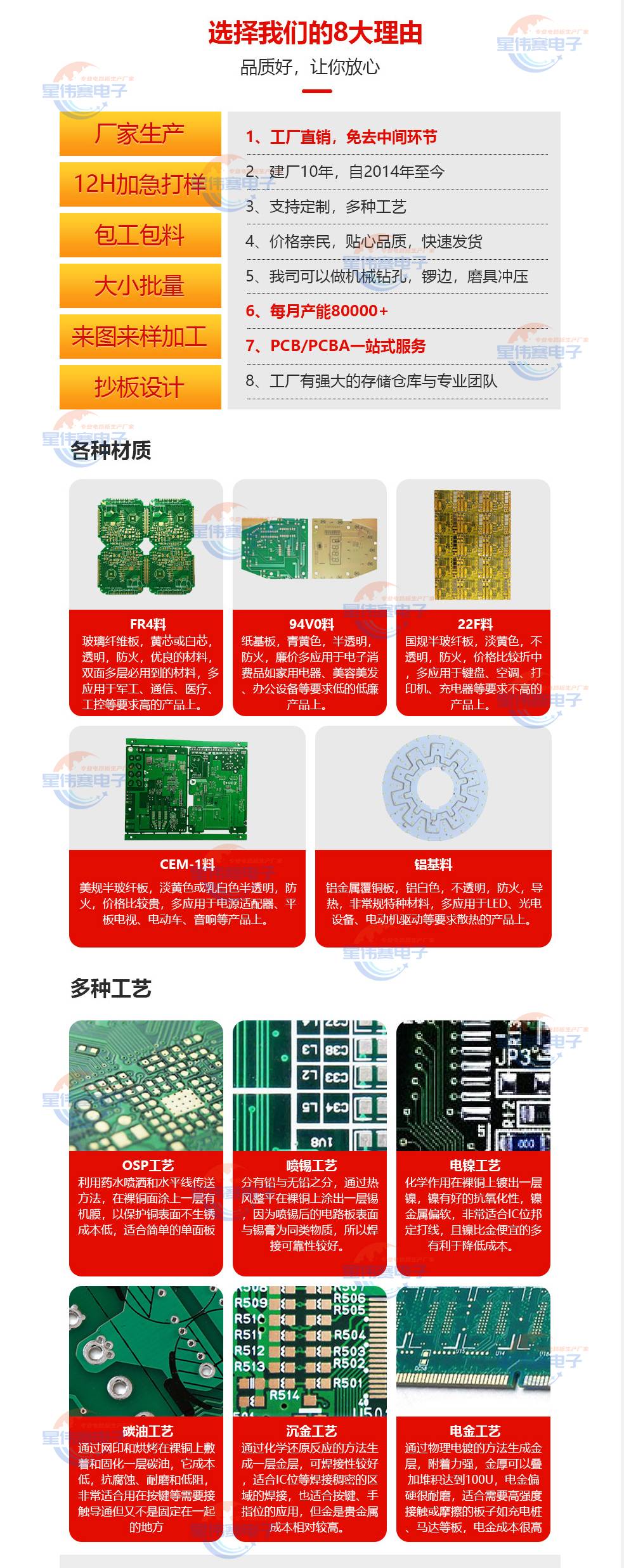 公司总共员工330人,月产能8万平米/月。样品最快可8小时交货,批量订单可24小时交货。公司主要做快板中批量为主,10平米以内免开测试架,可以像某立创一样网上自助下单,官网:www.xwspcb.com,客户可一对一线下沟通服务,长期稳定优质客户月结。
