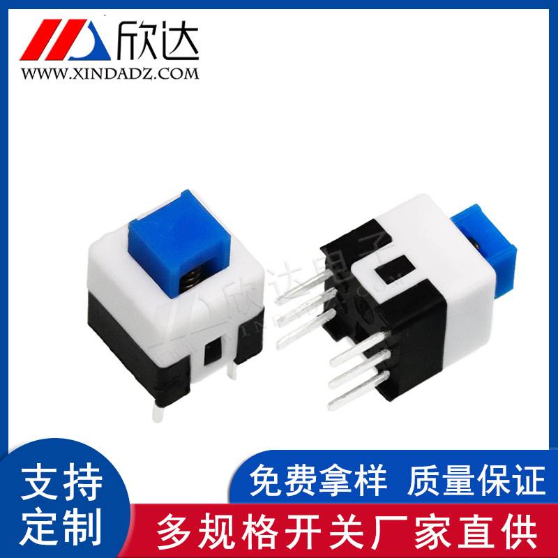 厂家直供 贴片双排自锁开关 微型六脚8x8立式直插轻触按钮开关