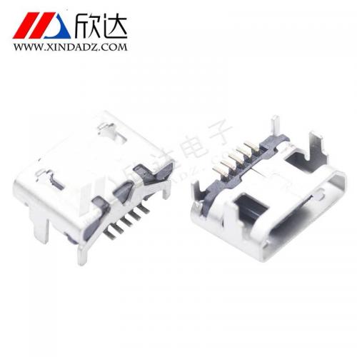 厂家直供MICRO母座大牛角平口5pin贴片安卓充电四固定脚USB连接器