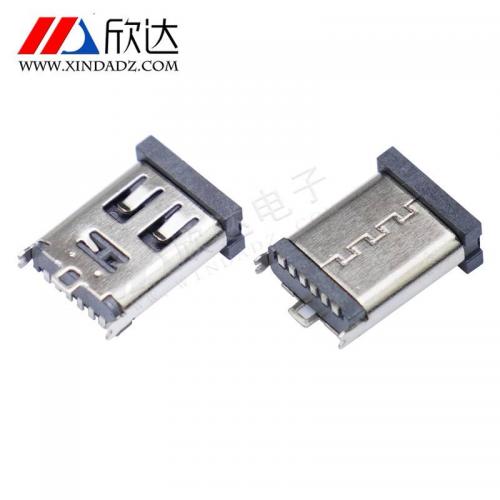 厂家批发Type-C 6P立贴10.0H三脚单弹USB连接器 连接器插座现货