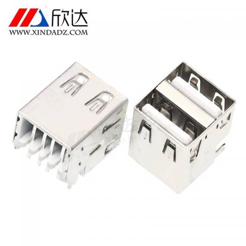 厂家直供 USBA母座连接器 双层usb接口直插10mm无边白胶90度插座