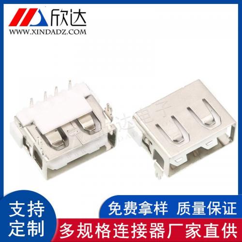 10mm短体卧式usb连接器 6.8高无边母座 4脚直插固定脚USB插座