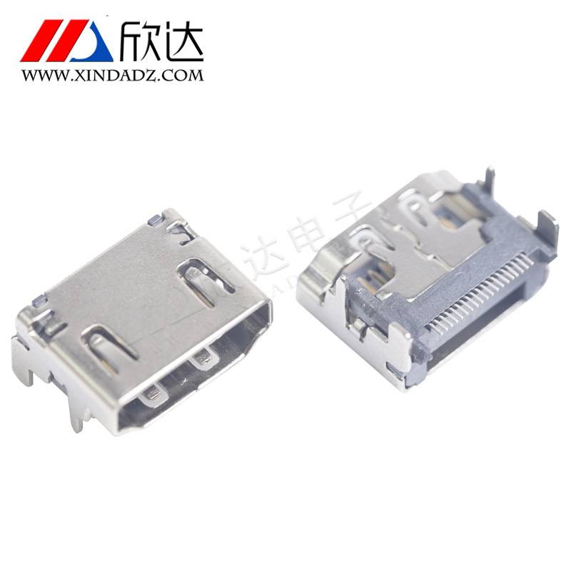 工厂直销HDMI连接器母座贴片 传输接口无耳无凸点镀镍铁壳四脚插