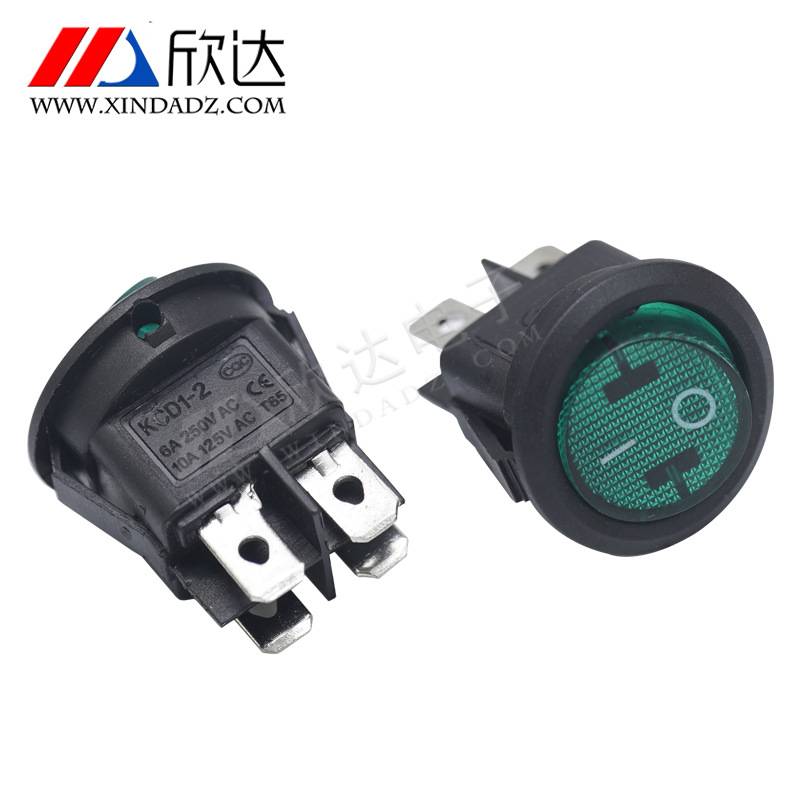 工厂直供 KCD1-224带灯24V绿色 4脚2档按键插脚开关 圆形船型开关