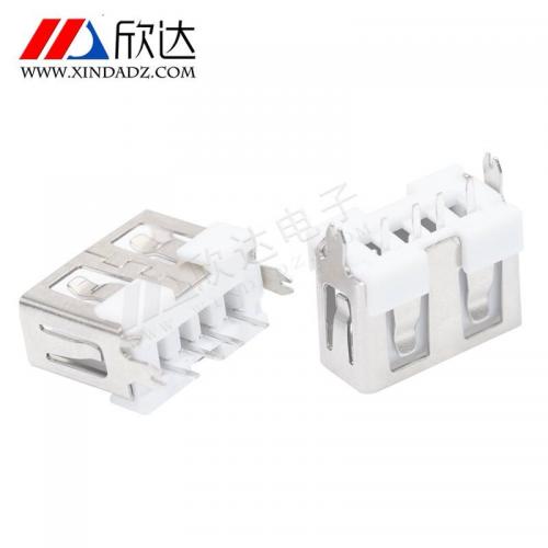 工厂直供USB连接器AM10.0 180度平口白胶 贴片式USB连接器