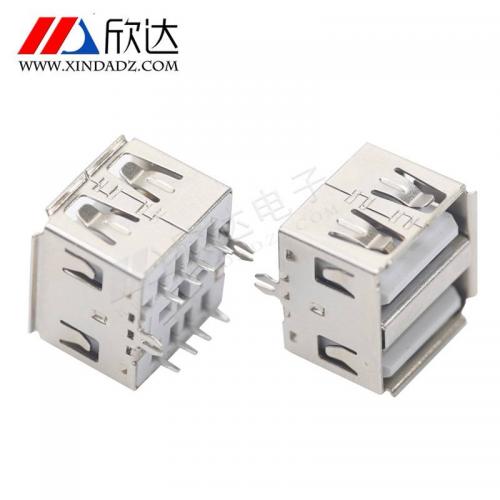 厂家直供USBA母座连接器 双层卷边180度短体10.5MH鱼叉脚接口插座