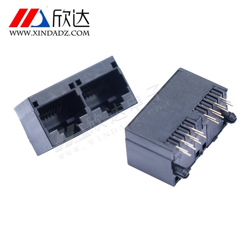 工厂直供RJ45网络接口连接器51E-1 2-8P8CRJ45无弹网口座双孔网口