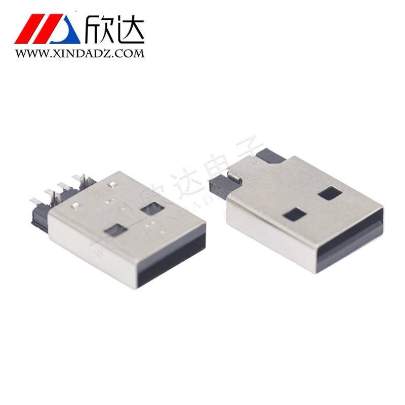 工厂直供USB连接器 AM180度鱼叉脚黑胶铁壳 贴片式USB连接器