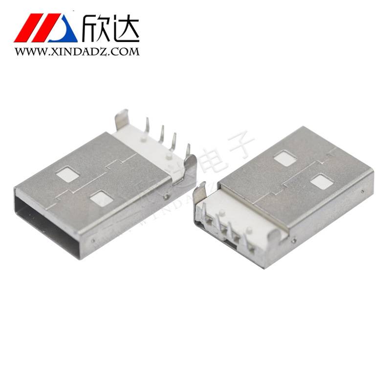 工厂直供USB连接器AM 90度插板铁白胶铁壳贴片USB连接器现货批发