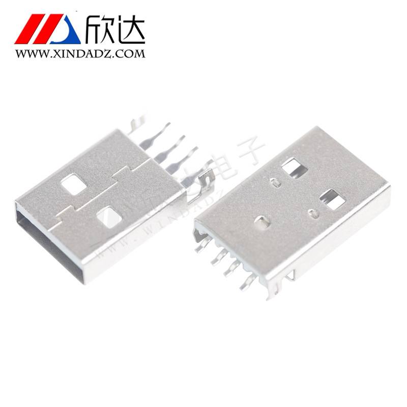工厂直供USB连接器A公沉板弯脚有柱180度公头贴片式白胶连接器