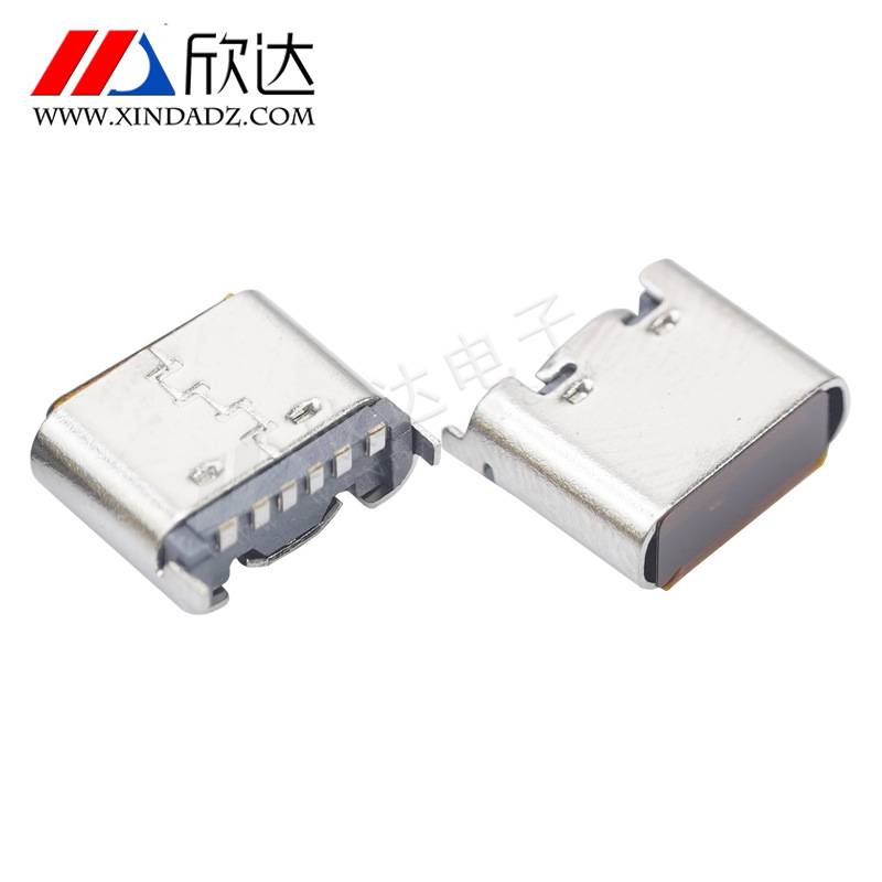 厂家批发TYPEC 6P 6.8H立贴贴膜USB连接器 type-C连接器插座现货