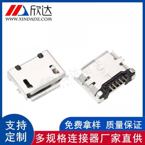厂家直供 micro母座 6.4mm平口有柱铁壳 USB连接器 5Pmicro连接器