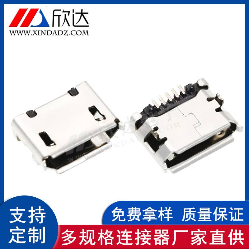 厂家直供 micro母座 6.4卷边有柱铁壳 USB连接器 5Pmicro连接器