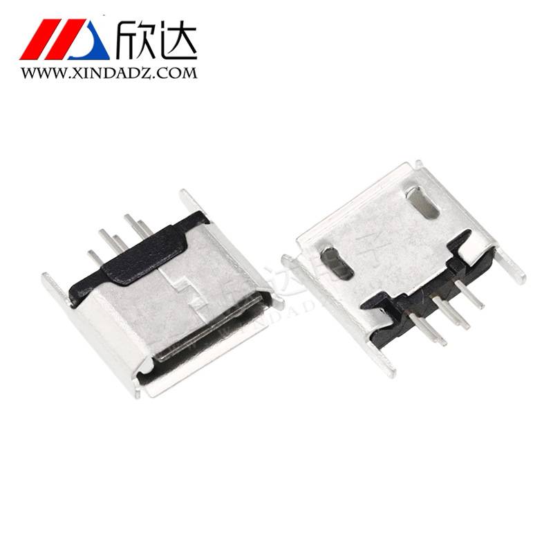 厂家直供 micro母座 180度卷边 USB连接器插件 5脚卧式USB插座