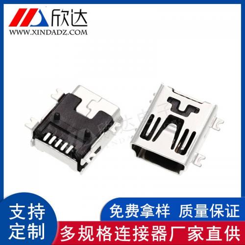 工厂直供 mini连接器5P全贴平口铁壳 贴片USB母座接口插座连接器