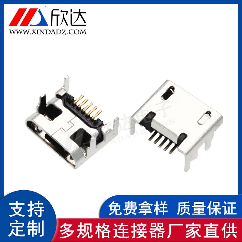 厂家直供 micro四脚平口母座 USB连接器插件 直插卧式USB充电插座