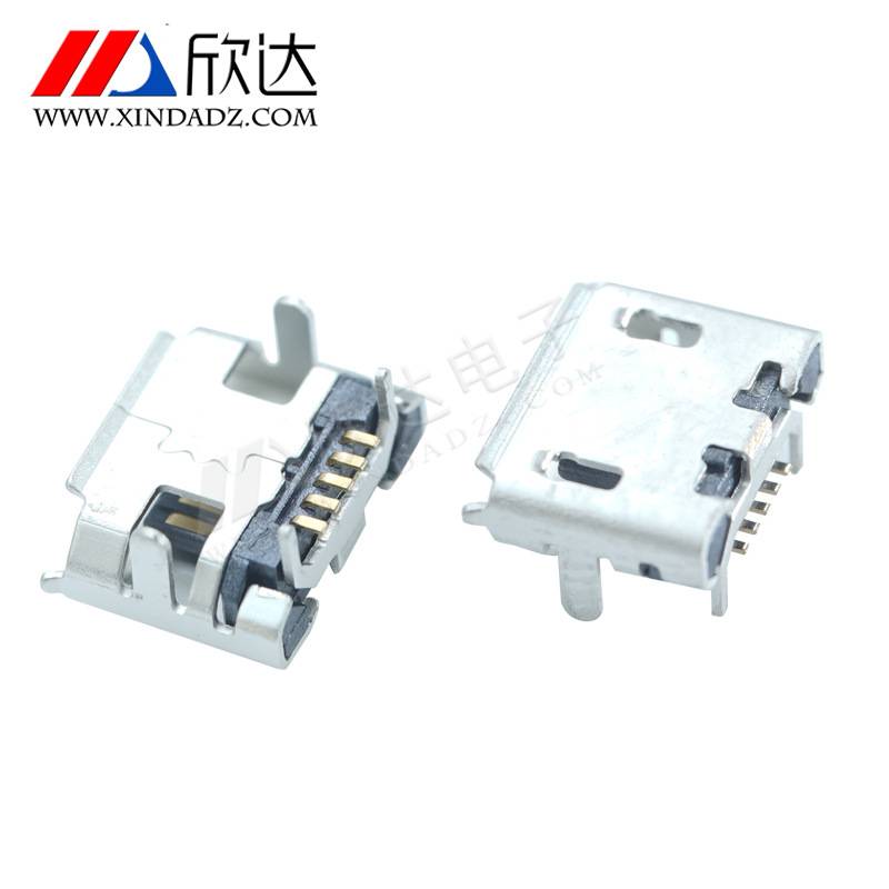 厂家直供 MICRO小牛角卷边有柱卷边插板式四脚直插 迈克USB插座