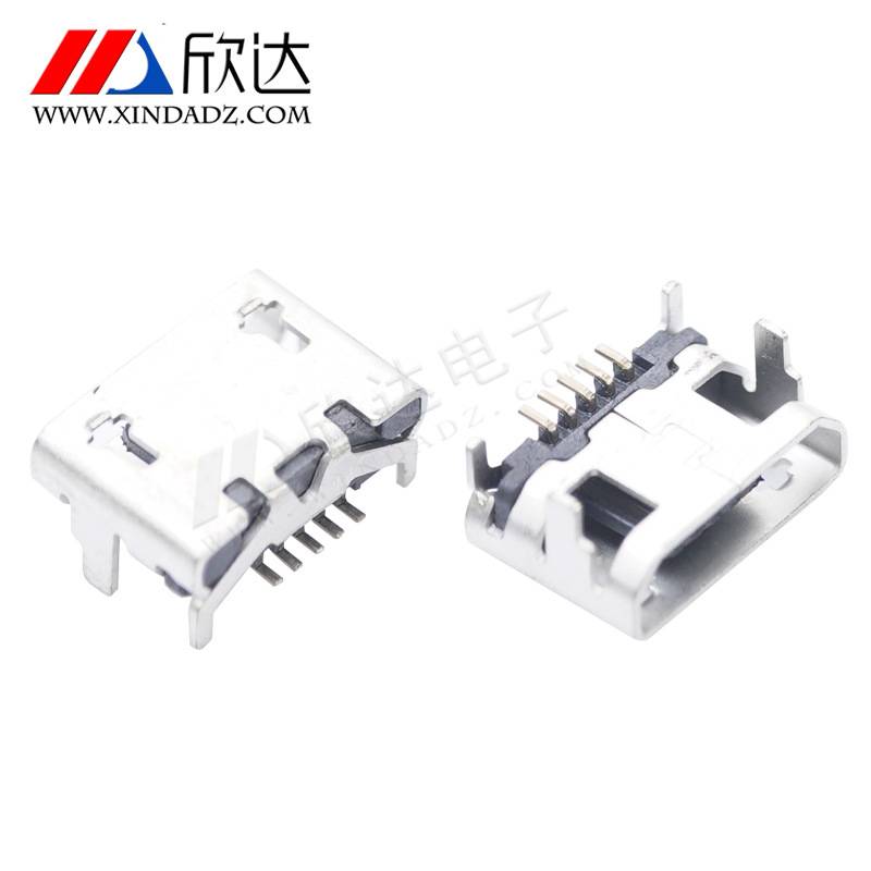 厂家直供MICRO母座大牛角平口5pin贴片安卓充电四固定脚USB连接器