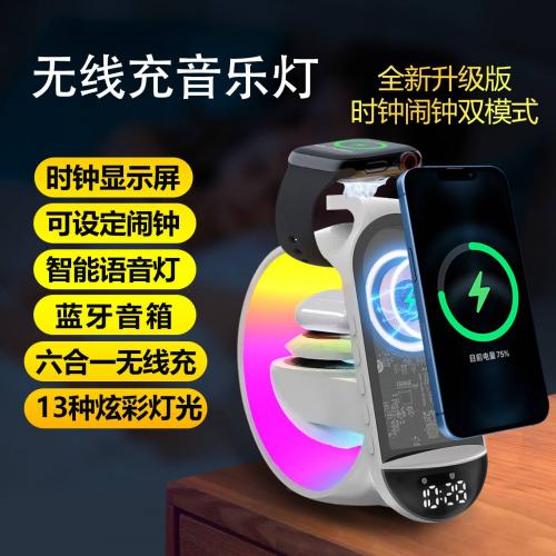 新款私模小a蓝牙音箱六合一无线充大G氛围灯闹钟便携K歌话筒音响