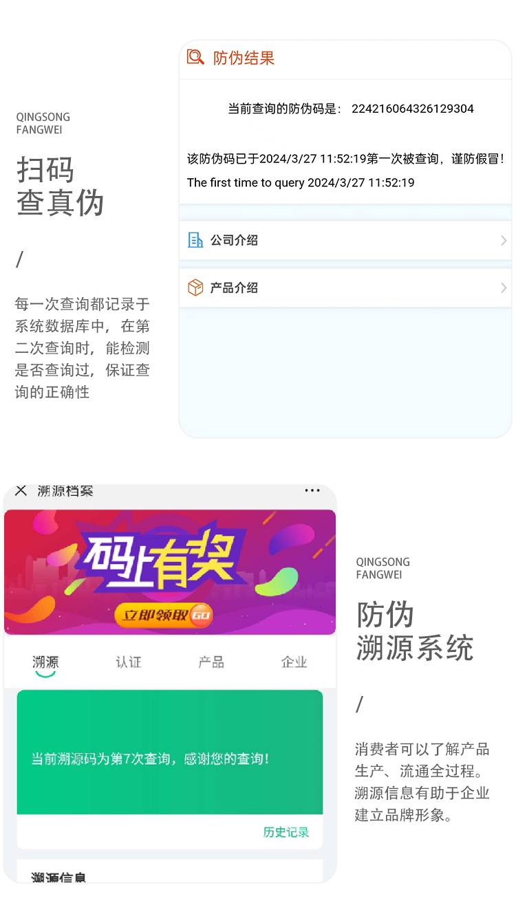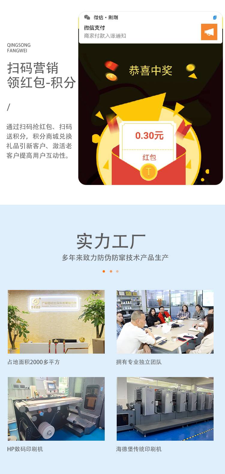 结合当今的印刷技术、设备,使防伪团花、版纹可随机变化,并能通过查询平台去查询追溯,以此辨别商品或者票证等印刷品的真伪。