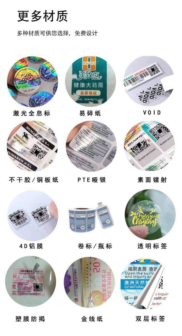 定制电子版防伪标签 全息激光镭射标 激光炫彩高大上防伪标 一物一码防伪标