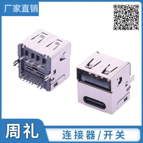 TYPE-C 14P 立插母座 双层 二合一A_C USB2.0母座 H_11.0mm