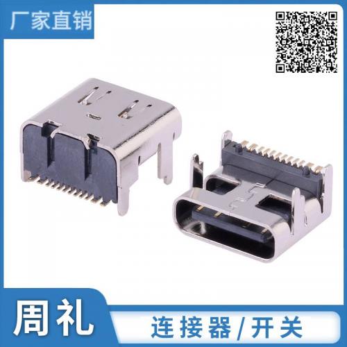 TYPE-C 16P 卧式加高母座CH_1.0-2.0-2.5-3.0 垫高SMT 板上连接器