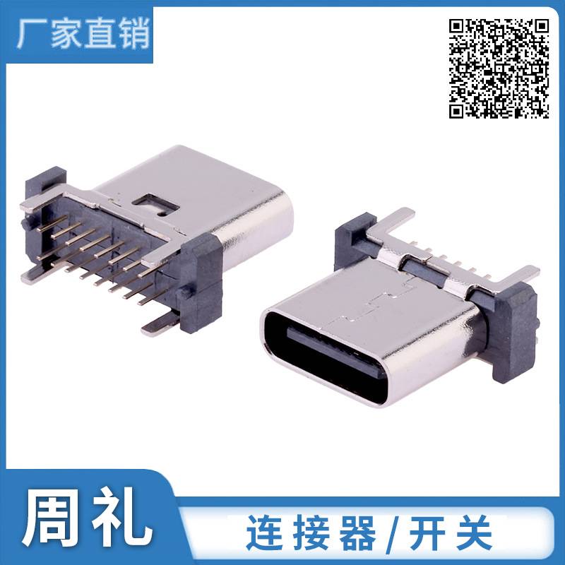 TYPE-C 6P 立贴母座 高度6.5-6.8-7.4 180度 DIP_SMT 连接器
