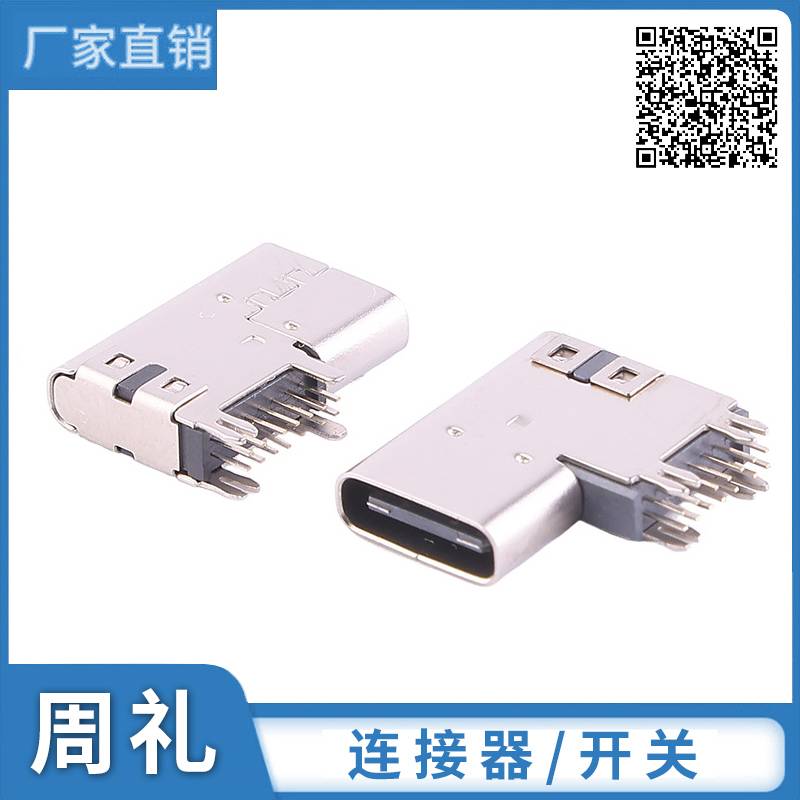 TYPE-C 14P 母座 测插垫高2.6 板上型 四脚插板DIP_SMT