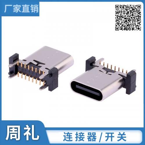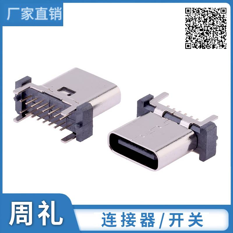 TYPE-C 16P 母座 立贴 H_6.5-8.8-9.3-10.0-10.5MM 板上型连接器